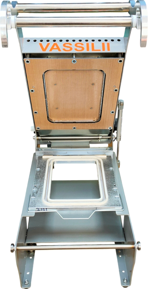 Ручной трейсилер (запайщик лотков) VASSILII Контур №2101 предназначен для герметичной упаковки в пластиковую тару готовых, замороженных или охлаждённых блюд, продуктов питания и напитков на пищевых производствах, предприятиях общественного питания и торговли. Такой способ упаковки позволяет значительно продлить срок годности пищевой продукции без потери вкусовых качеств, привлекательного внешнего вида и аромата. Имеет встроенный нож для контурной обрезки плёнки. Корпус изготовлен из металла, нагревательный элемент имеет тефлоновое покрытие.
