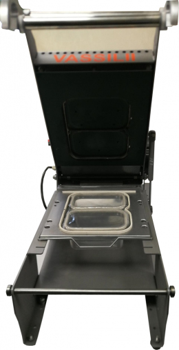 Ручной трейсилер (запайщик лотков) VASSILII Контур №2159 предназначен для герметичной упаковки в пластиковую тару готовых, замороженных или охлаждённых блюд, продуктов питания и напитков на пищевых производствах, предприятиях общественного питания и торговли. Такой способ упаковки позволяет значительно продлить срок годности пищевой продукции без потери вкусовых качеств, привлекательного внешнего вида и аромата. Имеет встроенный нож для контурной обрезки плёнки. Корпус изготовлен из металла, нагревательный элемент имеет тефлоновое покрытие.