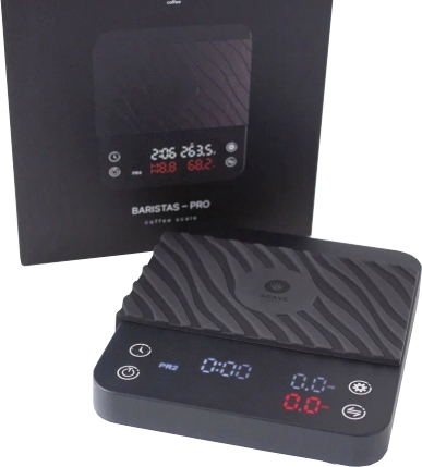 Электронные весы для кофе AGAVE COFFEE MINI предназначены для измерения пропорций ингредиентов, необходимых для приготовления напитков в кофейнях, барах, ресторанах и на других предприятиях общественного питания и торговли. Корпус изготовлен из пластика чёрного цвета.