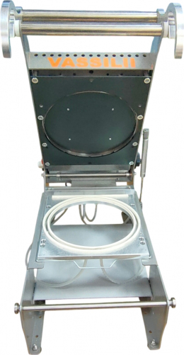 Ручной трейсилер (запайщик лотков) VASSILII Контур №2331 предназначен для герметичной упаковки в пластиковую тару готовых, замороженных или охлаждённых блюд, продуктов питания и напитков на пищевых производствах, предприятиях общественного питания и торговли. Такой способ упаковки позволяет значительно продлить срок годности пищевой продукции без потери вкусовых качеств, привлекательного внешнего вида и аромата. Имеет встроенный нож для контурной обрезки плёнки. Корпус изготовлен из металла, нагревательный элемент имеет тефлоновое покрытие.